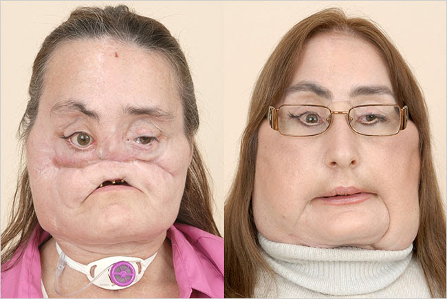 Holy buckets, they actually transplanted a lady's face. Before and after right there: